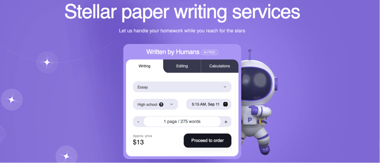 At first glance, PaperHelp.org looks impressive. The website is visually appealing, with a space travel theme featuring astronauts and planets, and the colors are smooth and easy on the eyes. It gives off the vibe of a professional, student-friendly service. But appearances are very deceiving.