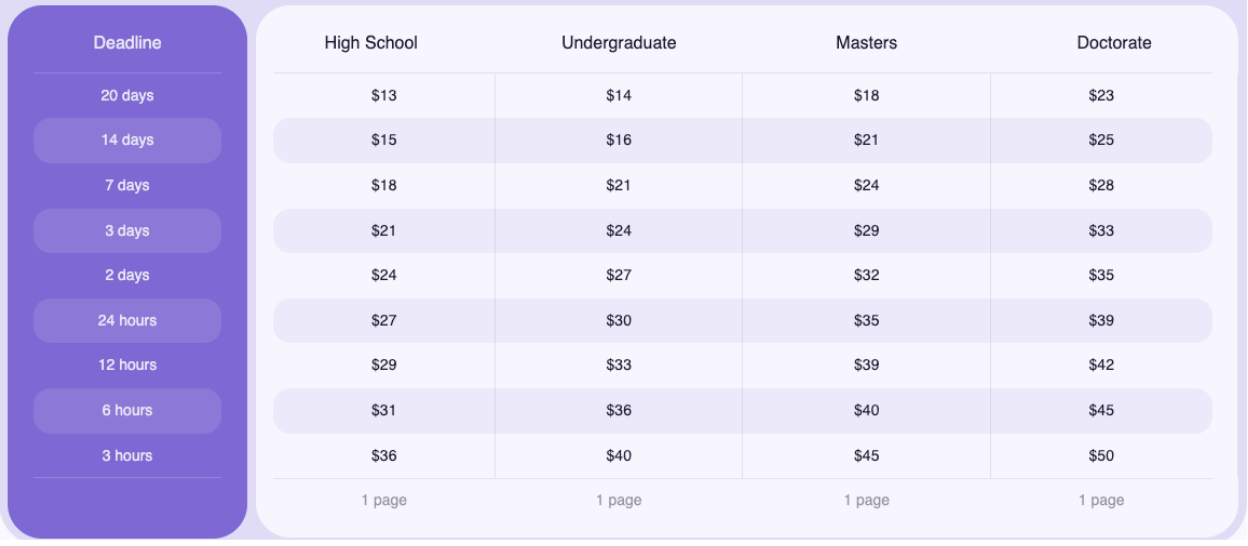 A: Prices start at $17 per page for high school-level papers and can go up to $27 per page for Ph.D.-level writing. Discounts exist, but they are often confusing and not very generous. Many students feel the price does not match the quality.