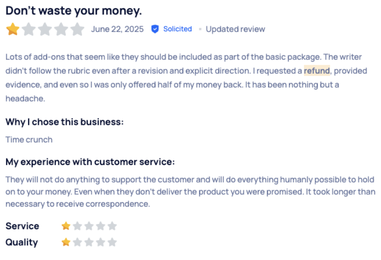 PaperHelp claims privacy policies and a refund guarantee, but reading hundreds of online reviews, it’s clear these guarantees are largely meaningless. Students rarely get refunds or meaningful support if they’re unhappy.