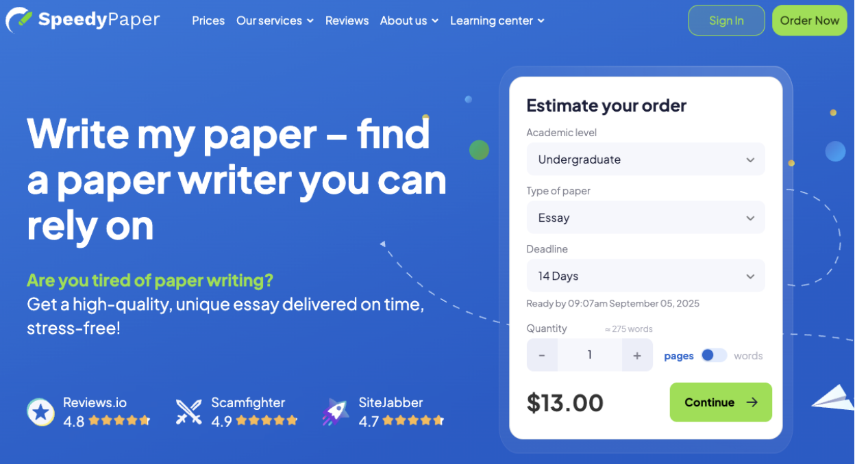 Yes, SpeedyPaper is a real company and will deliver papers. But legit doesn’t mean good. They’re known for delivering on time, but the quality of writing is inconsistent and often below what most students expect.