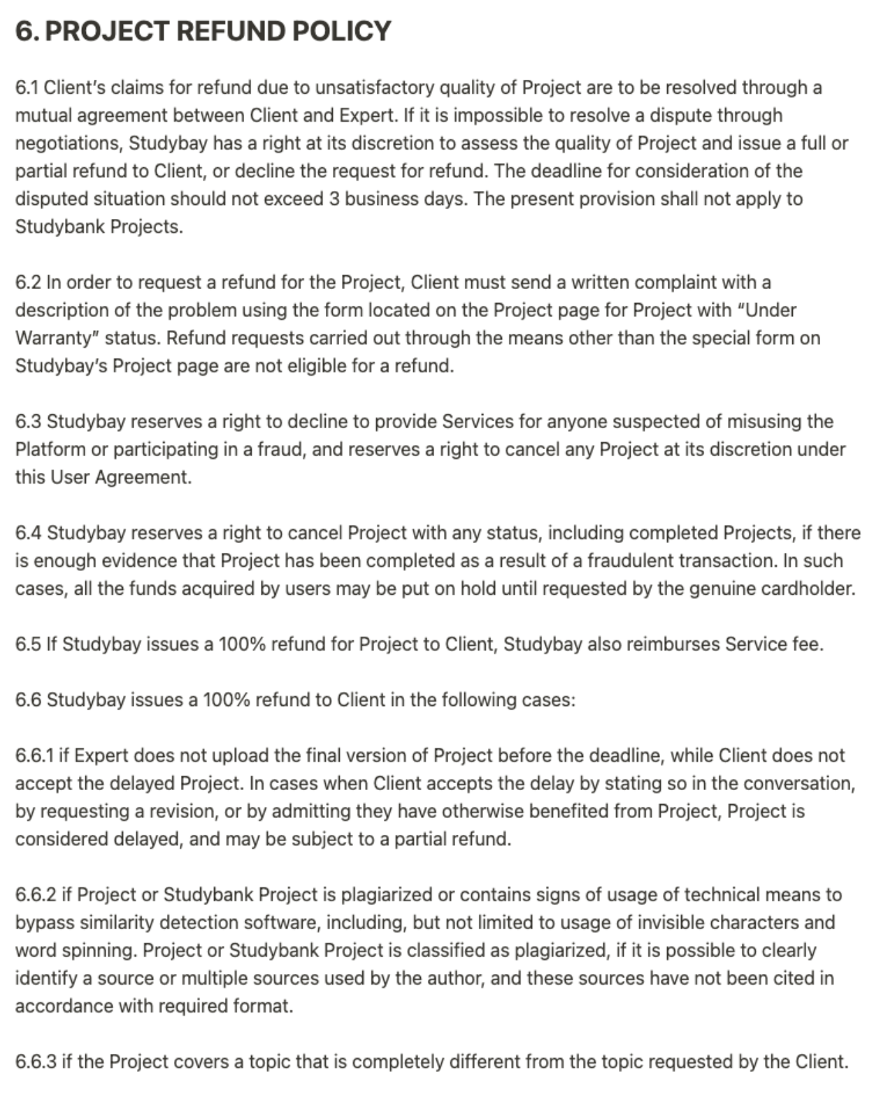 I requested a refund since Studybay advertises a money-back policy. Long story short: no refund. I was told the paper had been “delivered on time” and “met the requirements.” Absolute nonsense.